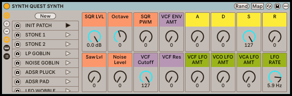 If you use Ableton (11 or 12), you can download a Synth Preset that allows you to work through the Synth Quest zine.